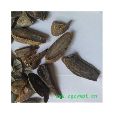 [性     状]:本品呈长圆形或卵圆形,稍扁,有的微弯曲,两端渐尖。长3.5~7cm,直径1.2~2.5cm。表面灰褐色或灰棕色,具不规则的纵皱纹,纵纹隆起处色较浅。质坚实,断面灰棕色,角质样;内皮层环明显。气微香,味微苦。