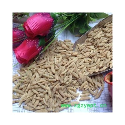 [性 状]:本品呈纺锤形,两端略尖,长1.5~3cm,直径0.3~0.6cm。表面黄白色或淡黄色,有细纵纹。质柔韧,断面黄白色,半透明,中柱细小。气微香,味甘、微苦。