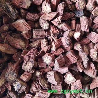 [性 状]:该药材丹参多为带根茎的根,根茎粗短,有茎基残余,下着生多数细长的根。根呈圆柱形,稍弯曲,表面呈砖红色,粗糙,具多数纵沟或皱纹,有须根痕,外部栓皮常鳞片状剥落,皮层有时开裂,长8~22cm,直径5~12mm,质坚脆,易折断,断面不平,疏松有裂隙,皮部棕渴色或砖红色,韧皮部狭。形成层明显,淡棕色,木质部导管束灰黄色或黄白色,放射状排列。气微,味微苦、涩,以条粗壮、色紫红者为佳。