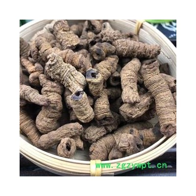 [性 状]:根扁圆柱形式圆柱形,略弯曲,长度不等,直径1-2cm,表面灰黄色或灰黄棕色,有的微带紫色,具纵皱及深陷的横纹,有的呈缢缩状或皮部横向断离而露出木部,形如鸡肠。质坚韧,折断面不平,皮部厚5-7mm,淡紫色,木部直径2-4mm。气微,味苦,略涩。
