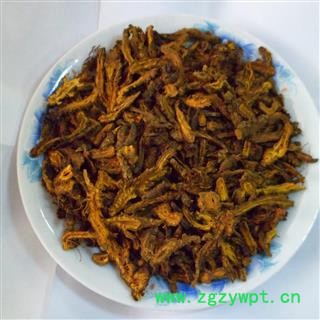 [性 状]:该品鸡爪连有碎渣及粉末状,味极苦,药材多数聚集成簇,常常弯曲,形如鸡爪,习称“鸡爪连”,其单枝根茎长3-6厘米,直径0.3-0.8厘米。表面粗糙,有不规则结节状隆起,有须根及须根 残基。节间表面平滑如茎杆,习称“过桥”。其上部多残留褐色鳞叶,顶端常留有残余的茎或叶柄。表面灰黄色或黄褐色。质硬,断面不整齐,皮部橙红色或暗棕色,木部鲜黄色或橙黄色,呈放射状排列,髓部有时中空。气微,味极其苦。