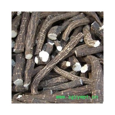 [性     状]:该药材干燥根呈圆柱形,粗细均匀而平直,长10~20厘米,直径1~1.8厘米。表面淡红棕色或粉白色,平坦,或有明显的纵皱及须根痕,栓皮未除尽处有棕褐色斑痕,偶见横向皮孔。质坚实而重,不易折断。断面灰白色或微带棕色,木部放射线呈菊花心状。气无,味微苦而酸。以根粗长、匀直、质坚实、粉性足、表面洁净者为佳。。