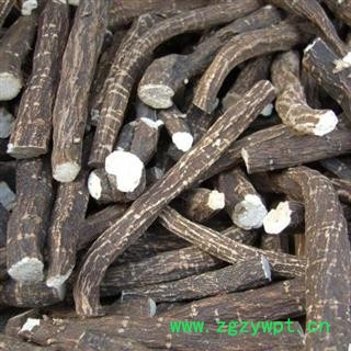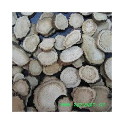 [性 状]:该药材干燥根呈圆柱形,粗细均匀而平直,长10~20厘米,直径1~1.8厘米。表面淡红棕色或粉白色,平坦,或有明显的纵皱及须根痕,栓皮未除尽处有棕褐色斑痕,偶见横向皮孔。质坚实而重,不易折断。断面灰白色或微带棕色,木部放射线呈菊花心状。气无,味微苦而酸。以根粗长、匀直、质坚实、粉性足、表面洁净者为佳。。