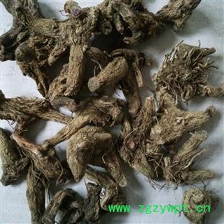 [性 状]:该品呈不规则扁圆形,多有2~3 个爪状分枝,长1.5~5cm,厚0.5~1.5cm。表面灰白色或黄白色,有数圈同心环节和棕色点状须根痕,上面有凸起的茎痕,下面有连接另一块茎的痕迹。