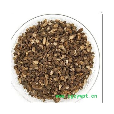 [性     状]:本品呈圆柱形,略弯曲,长3~lOcm,直径0.4~1.2cm。表面棕色至褐色,粗糙,有细孔状的须根痕和横皱纹。质硬而脆,易折断,断面不平坦,灰白色至棕褐色,近中心处色较深。气微香,味微苦、辛。