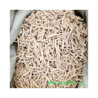 [性 状]:本品呈细长纺锤形或细长条形,稍弯曲,长3~10cm,直径0.2~0.6cm。表面黄白色,较光滑,微有纵皱纹,凹陷处有须根痕。顶端有茎痕。质硬而脆,断面平坦,淡黄白色,角质样;或类白色,有粉性。气微,味微甘。