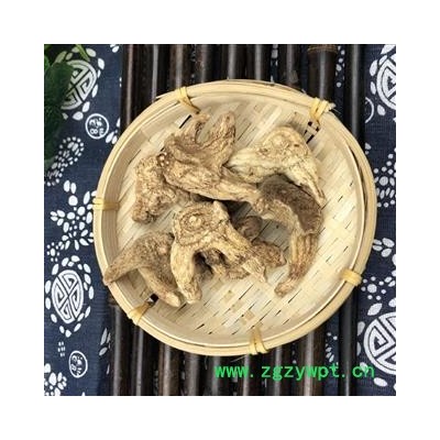 [性     状]:该品呈不规则扁圆形,多有2~3 个爪状分枝,长1.5~5cm,厚0.5~1.5cm。表面灰白色或黄白色,有数圈同心环节和棕色点状须根痕,上面有凸起的茎痕,下面有连接另一块茎的痕迹。