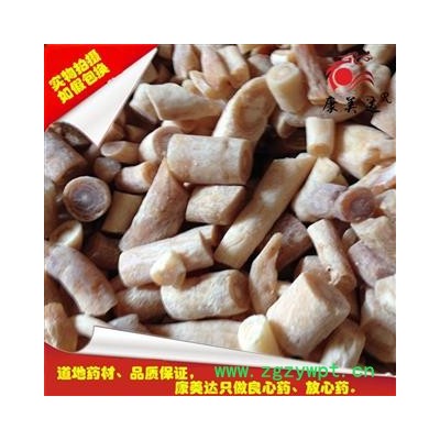 [性 状]:该品呈细长圆柱形、长纺锤形或不规则条块。表面黄白色或淡棕色,光滑或有纵沟纹及须根痕,有的具红棕色斑点。质硬而脆,断面角质养,皮部较薄,黄白色,有的易与木部剥离,木部类白色。