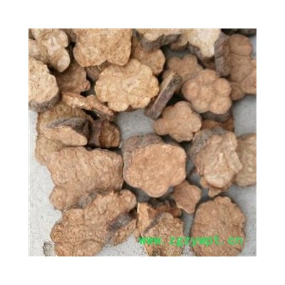 [性     状]:该品块根纺锤形或团块状,一般略弯曲。长5-15cm,直径4-10cm。表面红棕色或红褐色,凹凸不平,有不规则的纵沟和致密皱纹,并有横长皮孔及细根痕。质坚硬,不易折断。切断面淡黄棕色或淡红棕色,粉性,皮部有类圆形的异型维管束作环状排列,形成云锦花纹,中央木部较大,有的呈木心。气微,味微苦而甘涩。以体重、质坚实、粉性足者为佳。
