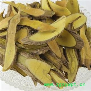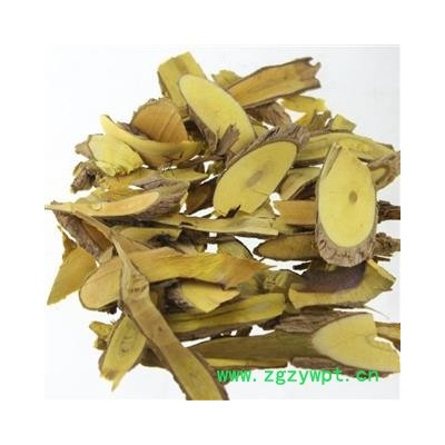 药材性状:茎圆柱形,直径0.7-1.5cm,多切成长短不一的段条或块片。表面灰棕色,有众多纵沟、横裂纹及突起皮孔;嫩茎较平滑,节明显,略膨大,节上有叶痕。外皮易剥支后内部鲜黄色。质坚硬,折断面纤维性或破裂状;横断面皮部棕黄色,木部鲜黄色,可见数个同心性环纹及排列紧密的放射状纹理,髓部淡黄色。气微,味苦。