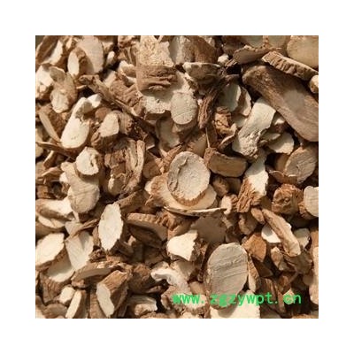 [性 状]:该药材根圆锥形,长10-20cm,直径2-2.5cm。止部近方形或类方形,表面灰棕色,有多数皮孔样横向突起,长0.5-1cm,略排成四纵行,顶端有凹陷的茎痕。质是对实较重,断面白色,粉性,皮部密布棕色油点,形成层环棕色,近方形。气芳香,味辛、微苦。
