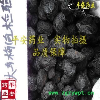 【性 状】呈类球形或扁球形,直径1.5~3cm,表面乌黑色或棕黑色,皱缩不平,基部有圆形果梗痕。果核坚硬,椭圆形,棕黄色,表面有凹点