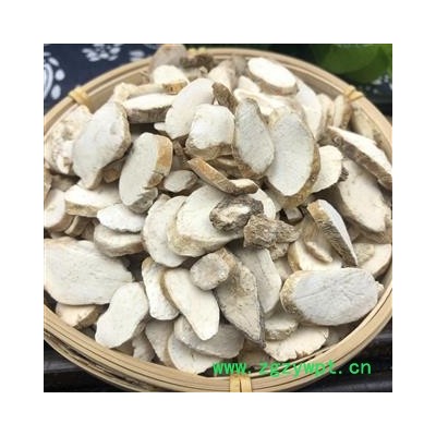 [性 状]:该品呈不规则圆柱形、纺锤形或瓣块状,长8~16cm,直径1.5~5.5cm。表面黄白色或淡棕黄色,有纵皱纹,细根痕及略凹陷的横长皮孔,有的有黄棕色外皮残留。质坚实,断面白色或淡黄色,富粉性,横切面可见黄色木质部,略呈放射状排列,纵剖面可见黄色纵条纹状木质部。无臭,味微苦。