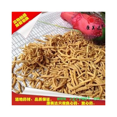 [性 状]:本品呈细长纺锤形或细长条形,稍弯曲,长3~10cm,直径0.2~0.6cm。表面黄白色,较光滑,微有纵皱纹,凹陷处有须根痕。顶端有茎痕。质硬而脆,断面平坦,淡黄白色,角质样;或类白色,有粉性。气微,味微甘。