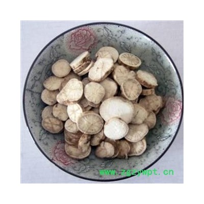 [性 状]:该品根不规则圆柱形,或剖切成半圆柱形或块状,常弯曲,弯曲处有深陷横沟而呈结节状,长5~15cm,直径1~5cm。表面灰黄色,有细皱纹及横向突起的皮孔。质坚重,断面平坦,灰白色,粉性。气微,味苦。