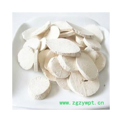 货物情况:统个,质坚实,断面白色或淡黄色,富粉性,横切面可见黄色木质部,略呈放射状排列,纵剖面可见黄色纵条纹状木质部,无臭,味微苦,无加重粉