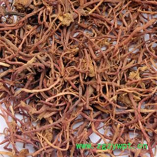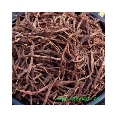 【表面特征】原形态毛须状,表面紫红色或灰红色,有纵皱纹;质较柔韧,易折断,断面淡棕色,边缘一圈现紫红色,中内有细小木心。气微香,味甜、微苦