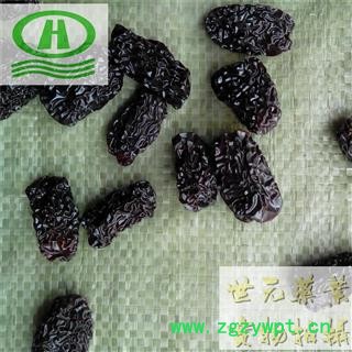 【药材性状】黑色,椭圆形,表皮多皱褶,有光泽感,长度2cm左右,直径1cm左右,口味甜
