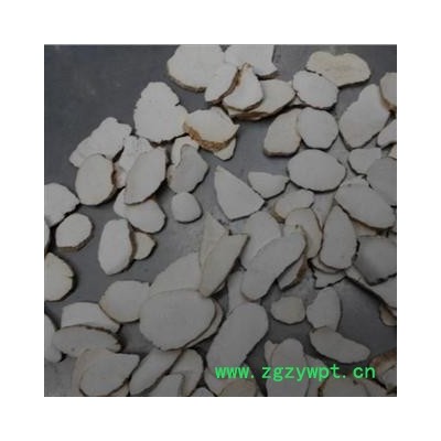 性状: 略呈圆柱形 不规则 表面黄白色,断面黄白色 表面光滑 直径约4-5cm 厚约3mm 有健脾胃,补虚作用