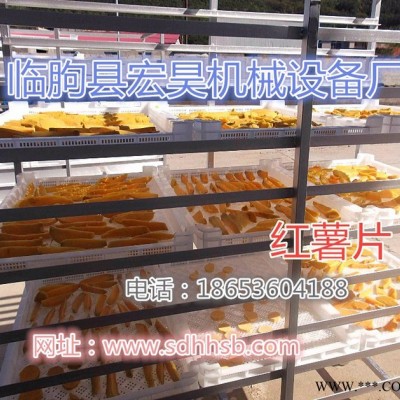 1、 待烘房温度升至30度时将红薯片放入烘房内部。设定温度为40度。烘干时间为一到两小时。
