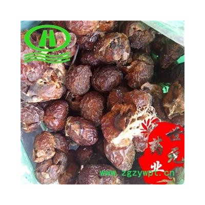 【性 状】果皮不规则团块状,展开后有不发育果爿脱落的疤痕。外果皮黄棕色或淡褐色,具蜡样光泽,皱缩;中果皮肉质柔韧,粘似胶质;内面种子着生处有白色绒毛
