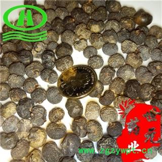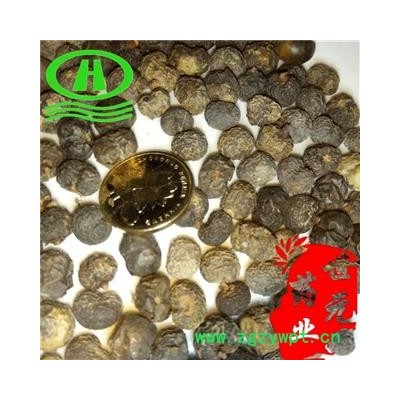 【性 状】果实肾形或近球形,常一面隆起,一面凹下,凹面有沟,旁有果柄根。长8-10mm,宽5-8mm,表面灰黄色或绿黄色,成熟者灰蓝色而被蜡被,平滑或有不规则网状皱纹,外果皮、中果皮较薄,常脱落而露出灰棕色或棕黑色坚硬的内果皮。气微