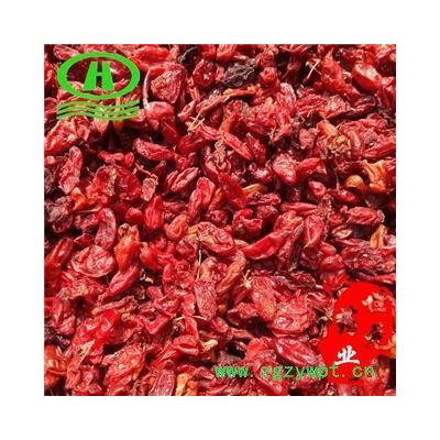【性 状】呈不规则的片状或囊状,长1-1.5cm,宽0. 5-1cm。表面紫红色至紫黑色,皱缩,有光泽。顶端有的有圆形宿萼痕,基部有果梗痕。质柔软。气微,味酸、涩、微苦。