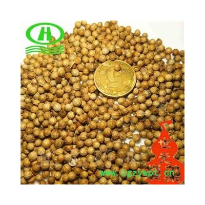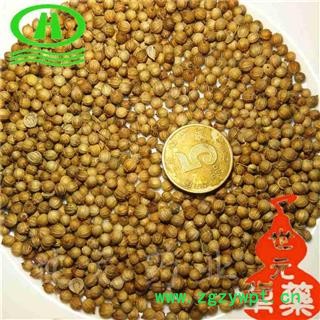 【性 状】胡荽子,果实为2小分果合生的双悬果,呈圆球形,淡黄棕色至土黄棕色,顶端可见极短的柱头残迹,多分裂为二,周围有钱存的花萼5枚。表面较粗糙,有不甚明显的波状棱线10条与明显的纵直棱线12条相间排列。基部钝圆,有时可见小果柄或果柄痕。