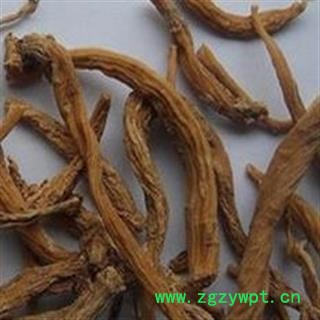 【药材性状】干燥根长圆锥形,长约8~15厘米,直径约0.5~1.5厘米,栓皮黄棕色,有多数纵皱纹;已除去栓皮者,呈黄白色,可见横孔纹。易折断,断页粉质状,维管束明显排列成黄色密集的放射 状纹理。