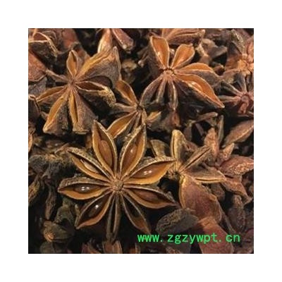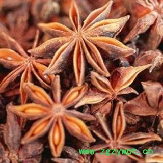 【性 状】:聚合果约由8个(稀5-13个)(艹骨)英果聚成,各分果近等大,放射状排列于中轴上,(艹骨)(艹突)果长1-2cm,高0.5-1cm,外表面棕褐色或红褐色,有不规则皱纹,顶端钝或钝尖,果皮较厚,上侧多开裂成小艇形;内表面淡棕色,有光泽。每个(艹骨)(艹突)果含种子1粒,扁卵圆形,红棕色或灰棕色,有光泽。果梗长3-4cm,弯曲,常脱落。气芳香,味辛、甜。