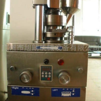 广州市旭朗机械设备有限公司所研制的小型旋转式压片机有XYP-5、XYP-7、XYP-9三种规格,分别有5、7、9副冲模,是目前国内重量、体积**小的旋转式压片机。 整机为不锈钢材料精密机加工制作而成,上、下可以独立拆开,便于运输。工作室由全透明有机玻璃罩密封,可有效防蚊虫、防尘,清洁、美观,工作情况一目了然,废料容易清洁,完全符合GMP生产标准。清除残余药粉和废料时可以将玻璃罩移开,非常方便。 该机可将粉剂、小颗粒压制成20毫米以下的圆形或异型片剂,产量为9000-15000片/小时,片剂厚薄、压力大小、压片速度均可根据客户的要求随意调节。该机外形简洁、小巧,重量轻,操作简便,适合制药、食品、化工、电子等行业使用。配有过载保护装置,当压力过载时,能自动停机。本机配有电磁制动电动机和其它安全保护装置,运行时也能调整与操作。 价格非常优惠 欢迎来电咨询! 多冲压片机参数: