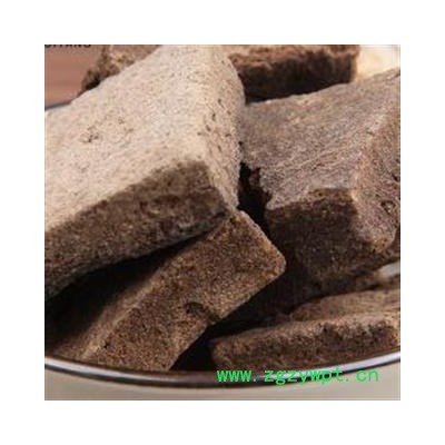 性状颜色:为灰褐色之小方块,表面间有黄白色斑点,微具香气。