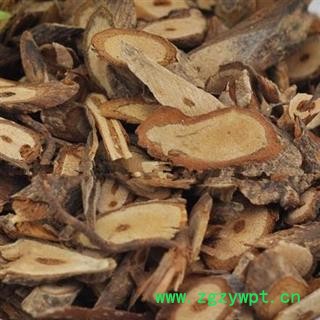 【药材性状】:质坚实,皮具韧性;横断面皮部棕褐色,有的易与木心分离;木质部淡棕黄色,可见细小导管孔排列成行呈放射状,中央髓部深棕色,常破裂或呈空洞