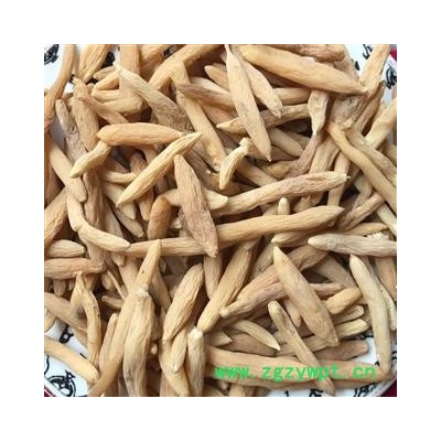 性 状:本品本品呈纺锤形,两端略尖,长1.2~3cm,直径0.4~0.7cm。表面淡黄色至棕黄色,具不规则纵皱纹。质柔韧,干后质硬脆,易折断,断面淡黄色至棕黄色,角质样,中柱细小。气微,味甜,嚼之发黏。