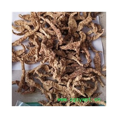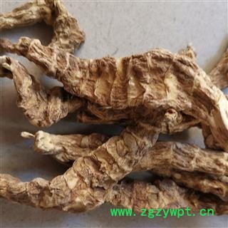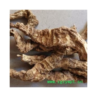 【药材性状】根茎扁圆柱形,略扭曲,长10~15厘米,径约1厘米,节明显,略膨大,节处有芽及膜质鳞片状叶,节间短。表面黄棕色或黄绿色,有皱纹。断面淡黄白色,细颗粒状。气无,味苦涩。