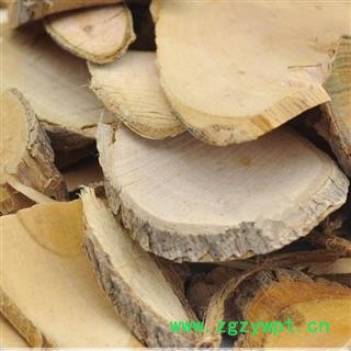 【性 状】表面灰黄色,有细纵皱纹及细根痕,刮除栓皮者呈红棕色。易折断,断面浃坦,皮部易肃落,木部占大部分,灰黄色至棕黄色