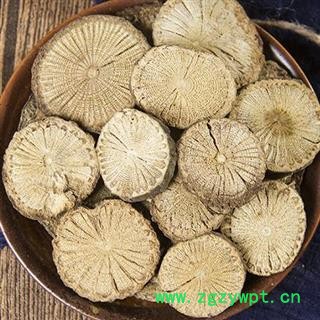 【性状颜色】:为长圆形或不规则的厚片。片面灰黄色或浅灰棕色,木部有放射状纹理,习称车轮纹其间具有多数小孔。髓部淡黄白色,周边绿褐色或棕褐色。体轻,质硬而脆。气微,味苦。