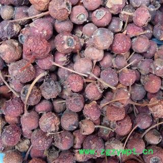 性状颜色:本品类球形,直径0.8~1.4cm,有的压成饼状。表面棕色至棕红色,并有细密皱纹,顶端凹陷,有花萼残迹,基部有果梗或已脱落,质硬,果肉薄,无臭味微酸涩。