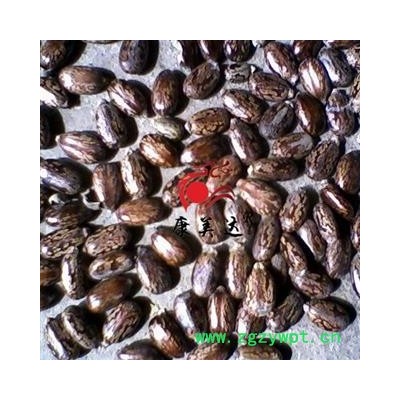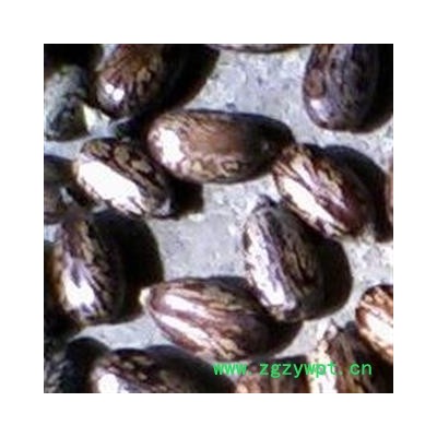 药材性状:本品呈椭圆形或卵形,稍扁,长0.9~1.8cm,宽0.5~1cm。表面光滑,有灰白色与黑褐色或黄棕色与红棕色相间的花斑纹。一面较平,一面较隆起,较平的一面有1条隆起的种脊;一端有灰白色或浅棕色突起的种阜。种皮薄而脆。胚乳肥厚,白色,富油性,菲薄,无臭,味微苦辛。