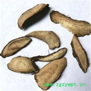 【表面特征】根圆柱形,常横切或纵切成大小不规则块片。横切者类圆柱状或圆片状,直径达4cm,栓皮表面棕褐色,有纵沟纹、横长皮孔样突起及支根痕。质坚实,不易折断。横切面灰白色,有凹凸不平的同心环纹,纵剖面有纵条纹