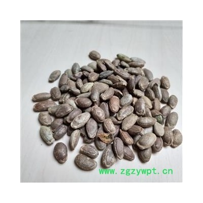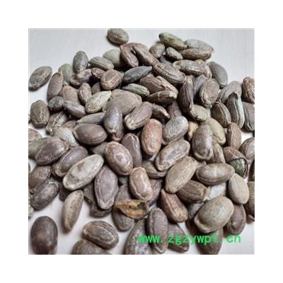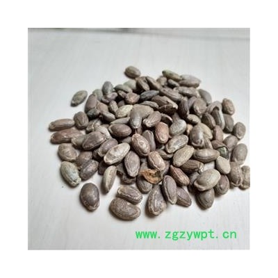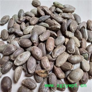 性状: 栝楼果实呈卵状扁平椭圆形,长11~16mm,宽6~12mm,厚2~3.5mm。表面浅棕色至棕褐色,平滑,边缘有一圈沟纹,顶端尖有种脐,基部钝圆或较狭。种皮坚硬,剖开后可见内种皮膜质,色灰白至灰绿色,含两片黄白色子叶,富油性。气微,味甘、微苦涩。