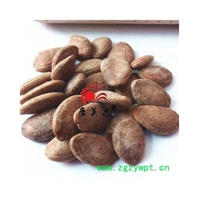 性状: 栝楼果实呈卵状扁平椭圆形,长11~16mm,宽6~12mm,厚2~3.5mm。表面浅棕色至棕褐色,平滑,边缘有一圈沟纹,顶端尖有种脐,基部钝圆或较狭。种皮坚硬,剖开后可见内种皮膜质,色灰白至灰绿色,含两片黄白色子叶,富油性。气微,味甘、微苦涩。