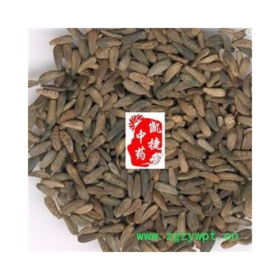 [性 状]:瘦果长倒卵形,略扁,微弯曲,长5~7mm,宽2~3mm。表面灰褐色,带紫黑色斑点,有数条纵棱,通常中间1~2条较明显。顶端钝圆,稍宽顶面有圆环,中间具点状花柱残迹;基部略窄,着生面较浅。果皮硬,子叶两片乳白色,油质。无臭,味苦后微辛而稍麻舌。