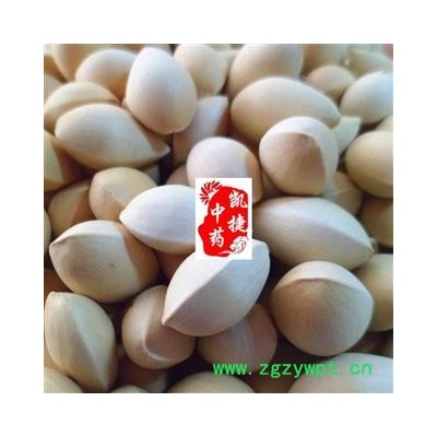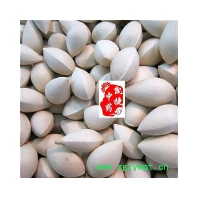 [性 状]:该品外种皮的种子卵形或椭圆形,长1.5-3cm,宽1-2.2cm。外壳(中种皮骨质,光滑,表面黄白色或淡棕黄色,基部有一圆点状突起,边缘各有1条棱线,偶见3条棱线。内种皮膜质,红褐色或淡黄棕色。种仁扁球形,淡黄色,胚乳肥厚,粉质,中间有空隙;胚极小。气无,味微甘、苦。以壳色黄白、种仁饱满,断面色淡黄者为佳。