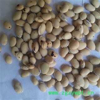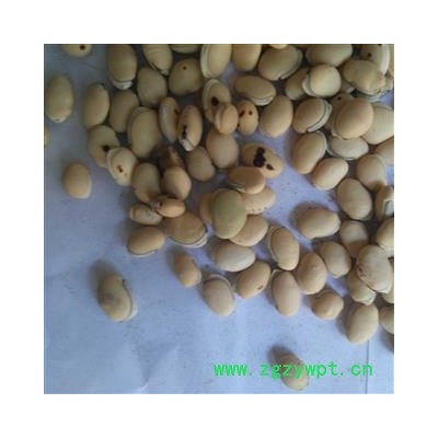 [性 状]:本品种子扁椭圆形或扁卵圆形,长0.8-1.3cm,宽6-9mm,厚约7mm。表面淡黄白色或淡黄色,平滑,稍有光泽,有的可见棕褐色斑点,一侧边缘有隆起的白色半月形种阜。长7-10mm,剥去后可见凹陷的种脐,紧接种阜的一端有珠孔,另端有种脊。质坚硬,种皮薄而脆,子叶2片,肥厚,黄白色。气微,味淡,嚼之有豆腥气。以粒大、饱满、色白者为佳。