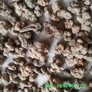 【颜色性状】:呈不规则块状,表面灰褐色,有瘤状突起和不明显的细皱纹,质硬,断面黄白色或黄色,颗粒状或角质样,有的略带粉性。质坚、断面黄白色