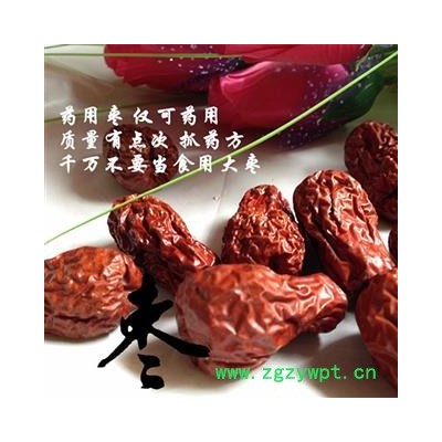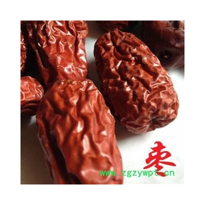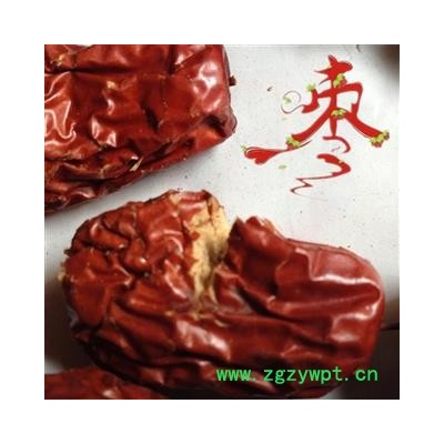 [性 状]:本品呈椭圆形或球形,长2~3.5cm,直径1.5~2.5cm。表面暗红色,略带光泽,有不规则皱纹。基部凹陷,有短果梗。外果皮薄,中果皮棕黄色或淡褐色,肉质,柔软,富糖性而油润。果核纺锤形,两端锐尖,质坚硬。气微香,味甜。