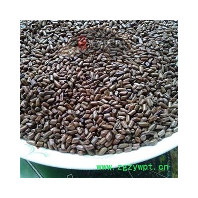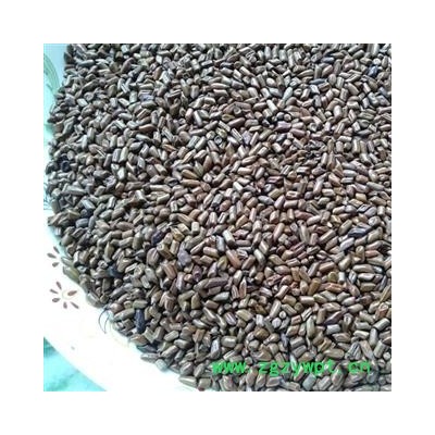 [性 状]:品略呈四方形或短圆柱形,两端近平行,稍倾斜,长3~7毫米,宽2~4毫米,绿棕色或暗棕色,平滑有光泽,背腹面各有1条突起的棱线,棱线两侧各有1条淡黄色的线形凹纹;质坚硬,不易破碎。横切面可见薄的种皮和2片3形折曲的黄色子叶。气微,味微苦。以颗粒饱满、色绿棕者为佳。