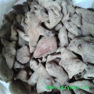 [性 状]:角倍呈菱形或卵圆形,具不规则角状分枝,长五倍子(图六)3-8厘米,直径2-5厘米。表面黄色或淡黄棕色,灰白色软滑短绒毛较明显。质硬而脆,破碎后中空,壁较薄,约0.1-0.2厘米,角质,内有多数黑褐色蚜虫尸体及灰色粉状排泄物。内壁浅棕色,平滑。剖面角质。微有特异臭气,味涩。