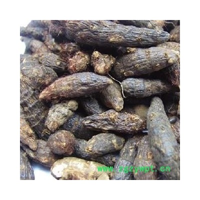 [性 状]:本品多呈纺锤形,有的略弯曲,长2~3.5cm,直径0.5~1cm。表面棕褐色或黑褐色,有纵皱纹,并有6~10个略隆起的环节,节上有未除净的棕色毛须和须根断痕;去净毛须者较光滑,环节不明显。质硬,经蒸煮者断面黄棕色或红棕色,角质样;生晒者断面色白而显粉性,内皮层环纹明显,中柱色较深,点状维管束散在。气香,味微苦。